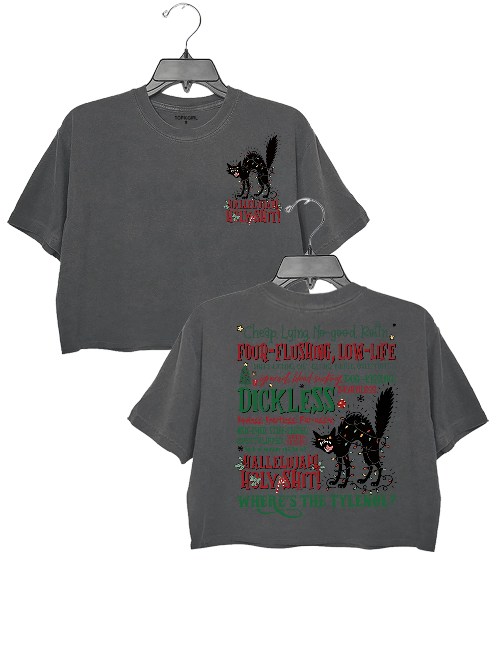 {"id":51184652320932,"title":"Crop Top \/ Gray \/ S","option1":"Crop Top","option2":"Gray","option3":"S","sku":"TGQ251140_Gray_CT_S","requires_shipping":true,"taxable":true,"featured_image":{"id":50850862071972,"product_id":10307592552612,"position":4,"created_at":"2025-11-20T00:51:06-09:00","updated_at":"2025-11-20T00:53:44-09:00","alt":null,"width":1000,"height":1300,"src":"\/\/topicgirl.com\/cdn\/shop\/files\/2_c5bff2db-8752-486a-93cb-8bd1729aae40.png?v=1763632424","variant_ids":[51184652320932,51184652353700,51184652386468,51184652419236,51184652452004]},"available":true,"name":"Hallelujah Holy Shit Where's The Tylenol - Crop Top \/ Gray \/ S","public_title":"Crop Top \/ Gray \/ S","options":["Crop Top","Gray","S"],"price":2499,"weight":180,"compare_at_price":null,"inventory_management":null,"barcode":null,"featured_media":{"alt":null,"id":42395897692324,"position":4,"preview_image":{"aspect_ratio":0.769,"height":1300,"width":1000,"src":"\/\/topicgirl.com\/cdn\/shop\/files\/2_c5bff2db-8752-486a-93cb-8bd1729aae40.png?v=1763632424"}},"requires_selling_plan":false,"selling_plan_allocations":[]}